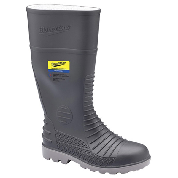 These boots feature a steel toe cap to protect those toes. They also have reinforced ankle and heel kick off lip. PVC/Nitrile compound is chemical, oil and acid resistant. Soft metatarsal pad to cushion the delicate metatarsal bones of your feet and reduce stress on pressure points while allowing full flexibility. Upper design with additional protective patterning provides greater resilience to cuts and abrasion in vulnerable areas. PU footbed with arch support and the revolutionary XRD? to provide extra cushioning and absorption/redirection of shock. Anti-bacterial, breathable and washable. Heavy duty tread base for extra stability, with sole pattern that resists clogging providing superior grip in all conditions. Knit lining for comfort. Ergonomically engineered toe spring reduces wearer fatigue.