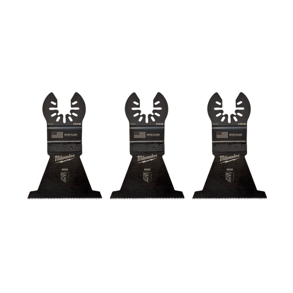 Our universal fit open-Lok oscillating multi-Tool hcs wood blades are made from premium high carbon steel with an aggressive tooth design and longer length, making this the ideal blade plunge cuts. This blade provides you with fast cutting performance in wood, pvc, drywall, and other soft materials. These Milwaukee open-Lok multi-Tool blades are designed and made in the usa with global materials. The hcs wood blades are available in a 1 or 3 packs for the 35mm, 63.5mm cutting widths and in a 1 pack for the 89mm cutting width blade.