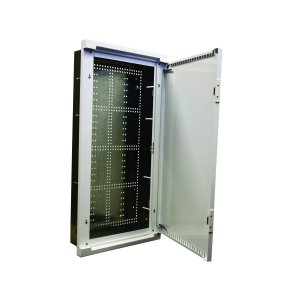 FEATURES: Meets and exceeds all the requirements of the TCF Code for Premise Wiring. Hinged enclosure with flush mounted vented door. Knock outs for cable entry on top and back panel. Locking mechanism knock out. (Lock purchased separately). Dual GPO power knock outs on bottom panel. Steel with durable white powder coating. Comprehensive hole matrix for device mounting. Installation accessories & earth kit included. Installs between 400mm centre studs. Cut out dimensions: 355 x 725 x 90mm