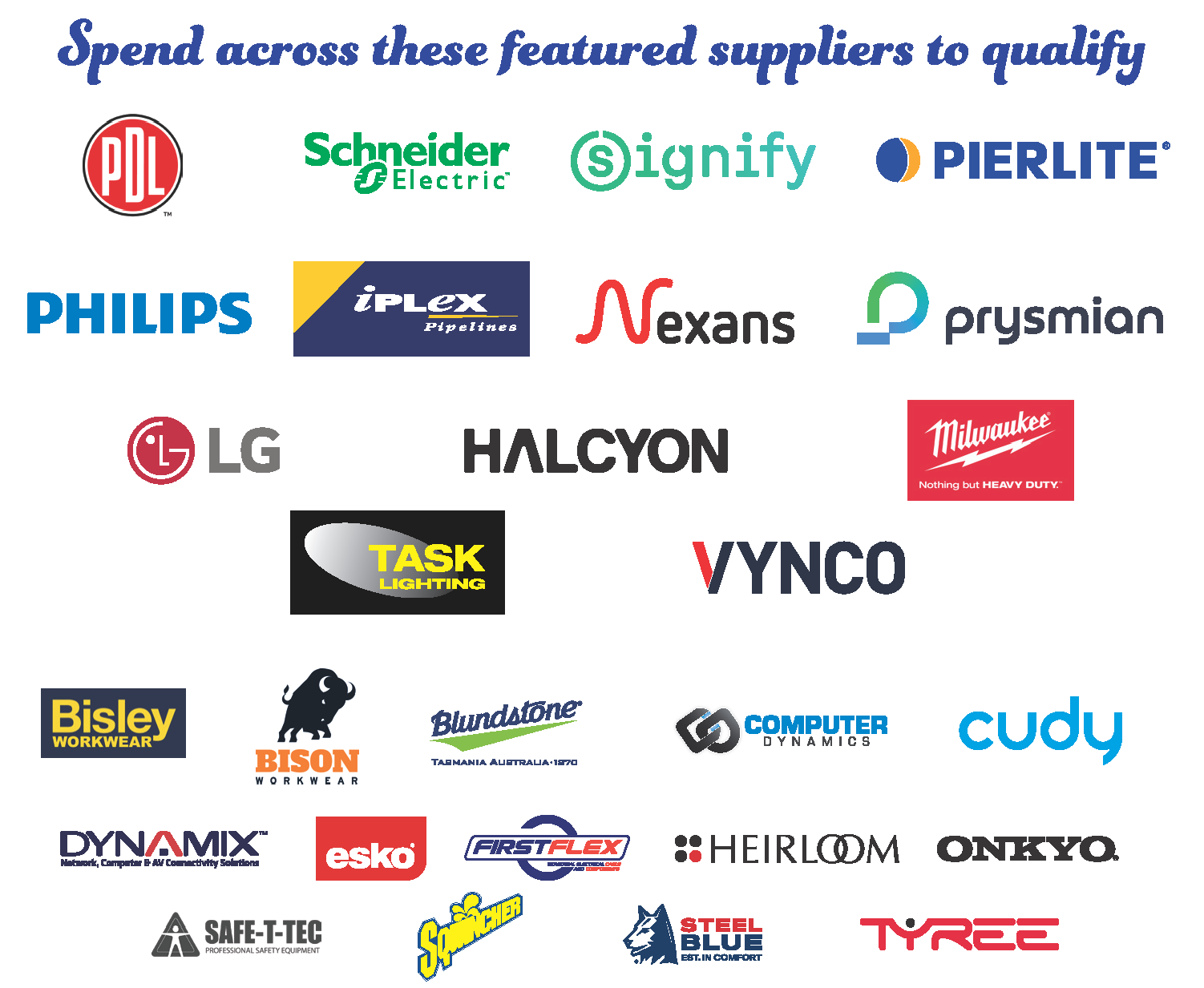 Featured Suppliers are Schneider Electric, Signify /Pierlite, Iplex, Nexans, Prysmian, LG (Split & Ducted Systems), Halcyon, Milwaukee, Task Lighting, Vynco, Blundstone, CDL(Cudy, Dynamix, Onkyo), ESKO, Firstflex, Steel Blue, Heirloom International, PIP ANZ (NZ) Bisley, Bison), Pryme Au(NZD)(Sqwincher), Tyree.
